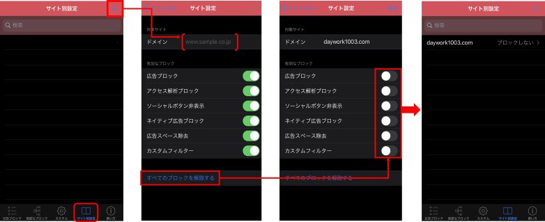この設定によって、広告やコンテンツをサイト別に表示する、表示しないということができます。