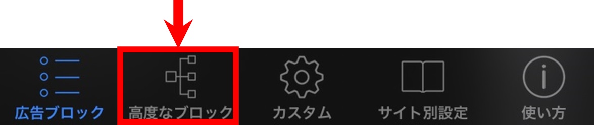 広告以外のコンテンツをブロック(非表示)したいときは、「高度なブロック」から行います。
