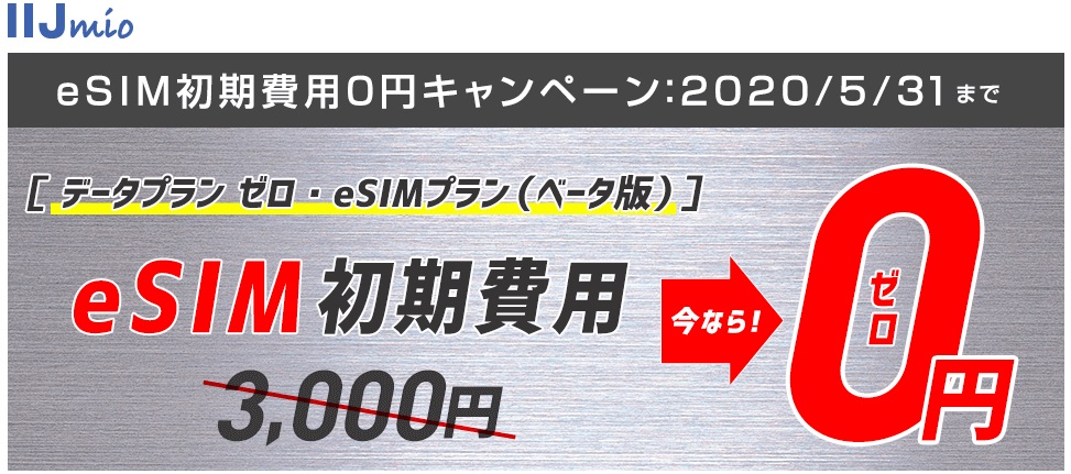 2020年5月5日現在、IIJmioのデータプランゼロの最大の目玉といっていいもの。それが新規加入時の初期費用が今ならタダ!であるということです。