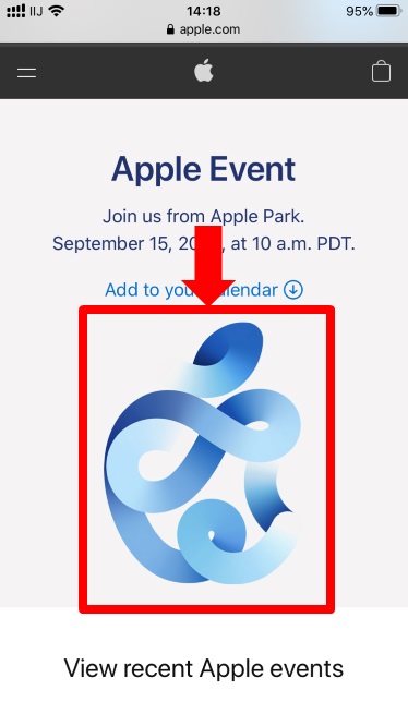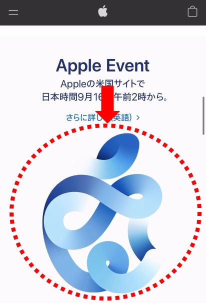 次にアップル公式サイトの中にあるスペシャルイベントの案内ページのアップルロゴをタップします。